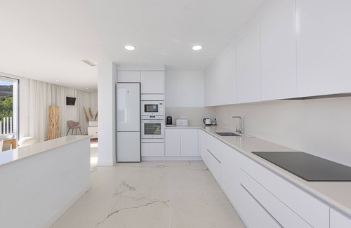 A spectacular contemporary villa with breathtaking views! This luxurious villa, perched on the coast, offers an exceptional 180-degree panoramic view of the sea, the Rock of Gibraltar, and the African coastlines, making each sunrise and sunset a magical moment. Located in a quiet and secure residential area, it combines prestige, comfort, and safety thanks to its integrated alarm system.Villa characteristics:4 spacious bedrooms, each elegantly furnished.4 modern bathrooms equipped with luxurious showers.A fully equipped kitchen, open to a large bright living room, perfect for relaxing and sharing convivial moments.Air conditioning and heating, for ideal comfort in all seasons.Complete equipment: dishwasher, washing machine, microwave, kettle, citrus juicer, electric griddle.Exterior and stunning view:A large private swimming pool, overlooking the sea, for unique moments of relaxation.A carefully maintained garden and a southwest-facing terrace, ideal for enjoying optimal sunshine and sunsets over Gibraltar.A private parking available (not suitable for low-clearance vehicles).Exceptional location:At only 5 minutes from the port of La Duquesa and the prestigious marina of Sotogrande.20 minutes from Estepona and 30 minutes from Marbella, perfect for shopping, cultural outings, and gastronomic experiences.In immediate proximity to shops, beaches, golf courses, and various activities.Conditions:Small animals are welcome in the villa, for an additional fee of 20 euros, ensuring a warm welcome for your four-legged companions. Book this contemporary villa today and experience a unique luxury and relaxation getaway on the Costa del Sol. The perfect setting for unforgettable vacations!