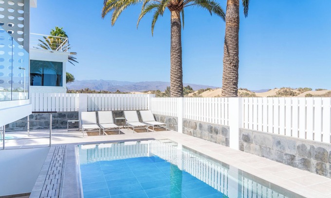 Villa "El Oasis"/Primera Linea de Playa Maspalomas has 7 Bedrooms , 7 Bathrooms, and max occupancy of 13 people. The minimum rental for this property is 1 nights, but this can change depending on the season you plan on staying. Previous guests have given good rated it, and VRBO labeled it a top-rated Villa because of the excellent services rendered by the owner or manager of this Villa, and has consistently provided great experiences for their guests. Most families or guests that use it recommend it to their friends and some of them are repeat guests. Villa has a friendly neighborhood, and the Meloneras has interesting places to visit. If you want to learn more about the Villa in Meloneras, such as places to visit and things to do nearby, you can check below to learn more.