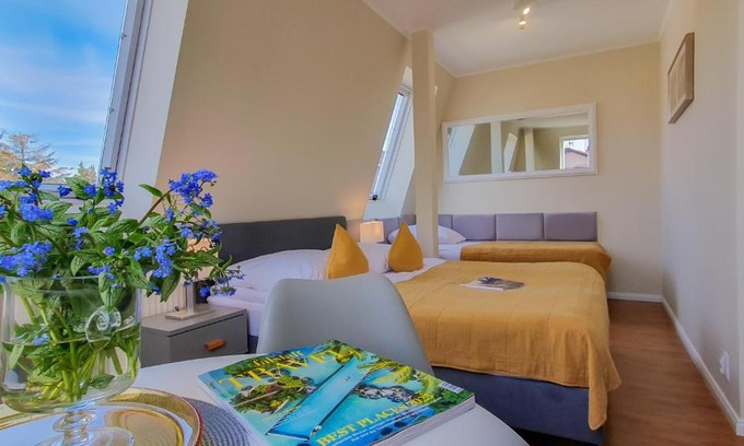 Just a 6-minute walk from Miedzyzdroje Beach and 0.8 miles from Miedzyzdroje Walk of Fame, Villa Elefant features accommodations in Międzyzdroje, with a garden. This homestay offers free private parking, luggage storage space, and free Wifi. The accommodation features bicycle parking and currency exchange for guests. At the homestay, the units have a desk, a flat-screen TV, a private bathroom, bed linen, and towels. A fridge and kitchenware are also featured, as well as a coffee machine and a kettle. The rooms are equipped with heating facilities. Świnoujście Train Station is 9.1 miles from the homestay, while Zdrojowy Park is 13 miles away.