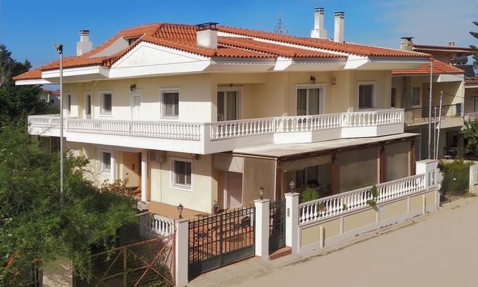 Luxury villa next to the beach.There are 4 bedroom,4 bathroom, 1 big luxury kitchen,2 living room,1 attic,barbecue and big garden with rare flowers and big balkony.The house is 250 are many restaurants and cafe. Also there are athletic center and children's playground. You will have the best holidays.5 minutes drive from proastiakos station and shopping center,10 minutes from city Corinth. Free 2 bicycle.