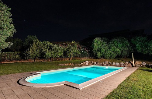 The villa, equipped with Wi-Fi internet connection, welcomes guests with the large and bright living room furnished with sofas, flat screen TV and a dining table with chairs. The kitchen is separated from the living room and is equipped with an induction hob, fridge, freezer, microwave, dishwasher, electric kettle, juicer, American coffee machine and toaster.The villa continues with the master bedroom equipped with a comfortable double bed, air conditioning, wardrobe and private en-suite bathroom with shower, sink, bidet and toilet. The second and third bedrooms are both equipped with a double bed, air conditioning and wardrobe, and benefit from the second bathroom with bath, sink, bidet and toilet. The fourth bedroom is equipped with two single beds and air conditioning, while the fifth bedroom is equipped with a single sofa bed; both of these bedrooms benefit from the Villa's third bathroom equipped with shower, sink, bidet and toilet.Villa Elisa has a beautiful, very large private garden, ideal for families with children who can play during the summer on Lake Garda, and cool off in the beautiful private pool!*We would like to inform our guests that renovations are taking place in the vicinity of the building. Therefore it is possible that there may be noise during the day.Guests will benefit from three outdoor parking slots inside the property.*Upon arrival or a few days before arrival it may be required to pay a tourist tax, which varies according to local regulations. You will find your reservation details within the Guest Area of Wonderful Italy.*The pool is open from May 15 to September 30.We also offer to our guests truly authentic experiences to live like a local. If interested, contact us and we will be more than happy to help you out designing an unforgettable holiday to discover Italian beauties.Desenzano del Garda is a lovely town overlooking the southern shore of the lake in the province of Brescia.In Desenzano it is possible to visit the ancient roman ruins of Villa Romana, the castle from the X century, walk along the romantic old harbor and stop for an aperitif, or go to the beach: the lake shores offer four beaches where to relax and enjoy the sun and the landscape. Desenzano is the perfect destination for sport lovers that will be able to wind surf, mountain bike and sail.In addition, this town is a great starting point to explore the southern part of Garda that offers stunning places, starting from the nearby Sirmione, the most prestigious city of the lake, proceeding then to Salò, with the new promenade, Maderno and Gardone Riviera.Verona airport can be reached with a 35-minute drive.