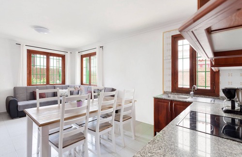 The cozy house is located on a plot of 540m2 where you can enjoy the pool, barbecue and relax in the sun. Distributed in 110m2 of construction, the property features four bedrooms and two full bathrooms, allowing us to comfortably accommodate up to 8 guests. Upon entering the property you will find a comfortable and bright room with a fully equipped American kitchen where to prepare delicious dishes with Mediterranean flavor.
