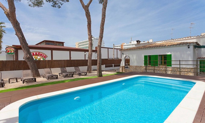 Beautiful house with private swimming pool located in s’Arenal, right on the party mile centre. This property is ideal just for young groups of friends who would enjoy the party and the nightlife of this area. Located right next to the Bierkönig – Schinkenstraße, the widely known beer bar of s’Arenal. Located just 3 minutes away from the beach by walking and also from all the leisure area where you could find lots of restaurants, shops, supermarkets, pubs…