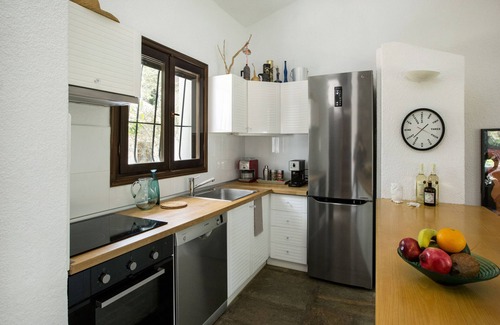 The Villa is a comfortable fit for a family or group of friends. The spacious living room with two large sofa beds can easily accommodate three people, and is directly connected to the kitchen and both terraces with large dining tables. The master bedroom has a double bed and a single raised bed, while the attic has a large double bed. The second bathroom is fully equipped, while there is an extra shower with hot water outdoors.