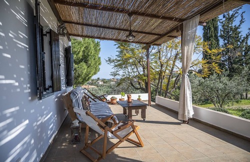 The house has a stunning view over the olive grove and the bay of Petrothalassa, a 3km long beach, only a 7 min drive away.