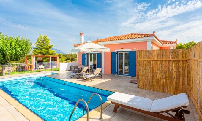Villa Europe Ena is located in Lakithra, just 2.5 miles from Byzantine Ecclesiastical Museum and 2.5 miles from Monastery of Agios Andreas Milapidias. This property offers a private pool, free Wifi, and free private parking. Monastery of Agios Gerasimos is 8.4 miles from the villa and Museum of Natural History of Kefalonia and Ithaca is 10 miles away. Offering a terrace and sea views, the villa includes 2 bedrooms, a living room, satellite TV, an equipped kitchen, and 1 bathroom with a shower. Towels and bed linen are offered in the villa. The property has an outdoor dining area. Guests at the villa will be able to enjoy activities in and around Lakithra, like cycling. Korgialenio Historic and Folklore Museum is 4.3 miles from Villa Europe Ena, while Argostoli Port is 4.6 miles from the property. Kefalonia Airport is 1.2 miles away.