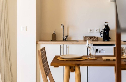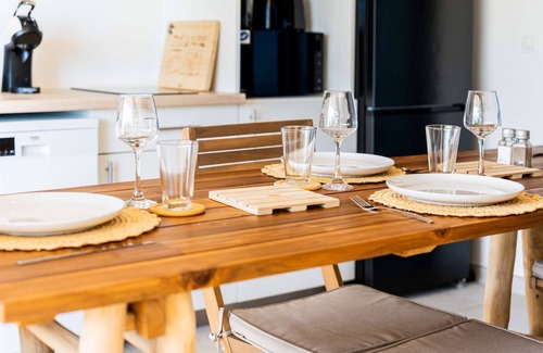 - Fully equipped indoor kitchen: hob, dishwasher, large fridge, Nespresso, cookware