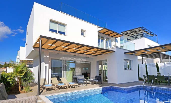 This modern villa is superbly situated on hill overlooking Ayia Napa, in a new luxury private villa complex that offers tranquillity and relaxation.