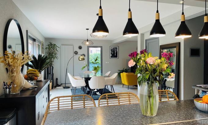 VillaEvian les Bains between lake and mountains is located in Neuvecelle. VillaEvian les Bains between lake and mountains provides accommodation, featuring Bedding/Linens, Fireplace/Heating, Child Friendly, among other amenities. This House features Bedding/Linens, Fireplace/Heating, Child Friendly, to make your stay a comfortable one.