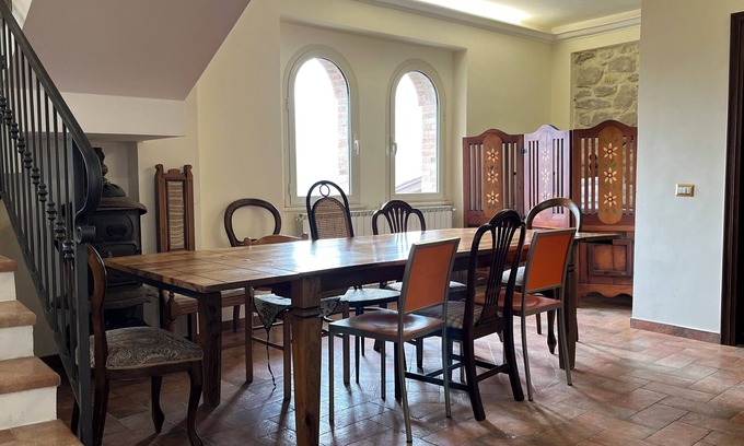 The Villa offers the interior divided into three independent apartments with kitchenettes, living rooms and bathrooms: an ideal choice for a large group of families and friends. The apartment can be found beside the historic center. It has a free parking space closeby. The flat is composed by a spacious living room and a kitchen with appliances including oven and dishwasher. The bathroom is equipped with washing machine. On the second floor there are two bedrooms (double and single) and a second bathroom with bath. There is a wonderful view of the below valley and is situated close to local services such as supermarket, bakeries, bars, caffetterias, trattorias and pizzerias etc.
