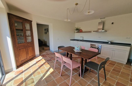 A barbecue area and a large outdoor dining table seating 16 guests invite you to enjoy convivial lunches and dinners, savoring delicious grilled meals immersed in the quiet of nature.