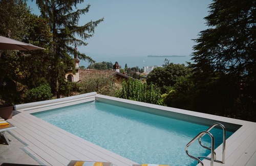 Historic villa with splendid lake view, private pool, 6000 sqm park, close to the beach and all services, 15 sleeps, acVilla Fiordisole is a beautiful villa characterized by a typical Italian historical flavor located at the foot of a hill in Barbarano, a small hamlet of Salò, with a splendid view of the lake, renovated in 2017. The villa is located a few steps from the beach and all services, it is surrounded by a large terraced park overlooking the lake, here in the early months of 2025 a beautiful outdoor area is being created with swimming pool, outdoor kitchen, porch with table for 15 people.The villa is on three levels, on the ground floor there is the entrance, a games room with table football and smart TV, a reading study and a service bathroom. On the first floor there is a large new and well-equipped kitchen, a bright and panoramic living room with smart TV and a dining room with air conditioning, very bright because it is surrounded by windows; bathroom; laundry room and washing machine; spacious master bedroom with air conditioning and beautiful terrace overlooking the lake, new en-suite bathroom with shower. On the upper floor there are 6 bedrooms and 3 new bathrooms. Air conditioning in the bedrooms.Beautiful antiques selected in combination with modern comfort.|
