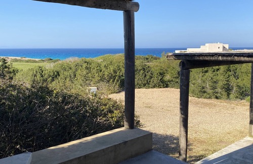 This spacious villa facing the sea offers a clear view, with Ibiza as a backdrop. Access to the sea (120m) and creeks is via a small path.