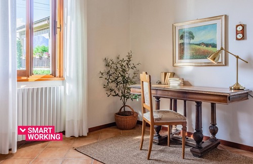 Cozy and bright independent villa with garden and lake view near the beach of San Giovanni in Bellagio. The accommodation spreads over two floors and is surrounded by a fenced garden featuring a beautiful gazebo with a dining table. The entrance, on the ground floor, opens onto the living area, consisting of a living room with a sofa, an armchair, a TV and a dining table, and a fully-equipped kitchen with an oven, a dishwasher, a kettle, a juicer, a coffee machine and a toaster. The ground floor is completed by a home studio, a bathroom with shower and a pantry room with a washing machine. Upstairs, guests can find the sleeping area, including four bedrooms: two have a queen-size bed each and also a balcony overlooking the lake, one has a single bed and the fouth one has two twin beds. Two bathrooms with a bathtub complete the layout. At guests' disposal amenities such as iron, wi-fi, heating and air conditioning. *In the area where the accommodation is located there are no taxis or public transport available for short local transport. It is therefore advisable to reach the destination by car.Cot and high chair available upon request, at an extra cost of 35€ per stay, per item.*Upon arrival or a few days before arrival it may be required to pay a tourist tax, which varies according to local regulations. You will find your reservation details within the Guest Area of Wonderful Italy.We also offer to our guests truly authentic experiences to live like a local. If interested, contact us and we will be more than happy to help you out designing an unforgettable holiday to discover Italian beauties.Lake Como offers some of the most striking urban, landscape and architectural gems of the entire Italian peninsula. Among these treasures stands Bellagio, "The pearl of the Lario", a village of just over 3000 inhabitants on the northern end of the Larian Triangle, in which the two branches of the Lake are divided. Among the most fascinating aspects of this village there are undoubtedly its charming villas, famous all over the world for their splendor and their manicured gardens. To mention some of them, Villa Melzi boasts many works of art and 18 km of paths in its garden, and Villa Serbelloni, today a conference center of the Rockefeller Foundation, features a wonderful garden as well. The old town, with its numerous shops located along narrow streets with steps, passages and arcades, is renowned all over the world and attracts thousands of tourists every year. The territory of Bellagio is vast and varied, you can visit the different lake hamlets such as Borgo di Bellagio, Loppia, San Giovanni and Pescallo, up to the top of Monte San Primo, reachable with a dense network of paths and itineraries for lovers of trekking and nature. Finally, Bellagio is well connected by boat to nearby villages such as Varenna, Lenno, Bellano, Menaggio, Tremezzo and Como. The apartment is 1,8 km from Bellagio Station and Bellagio Pier and 1 hour and 20-minute drive from Orio al Serio Airport.