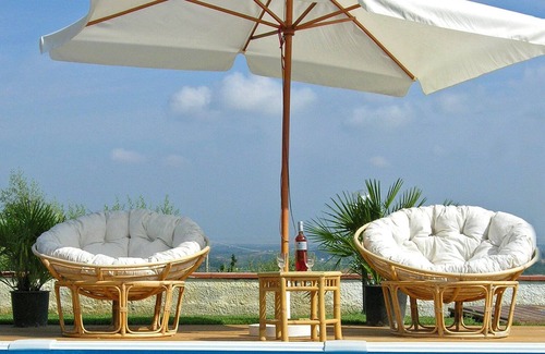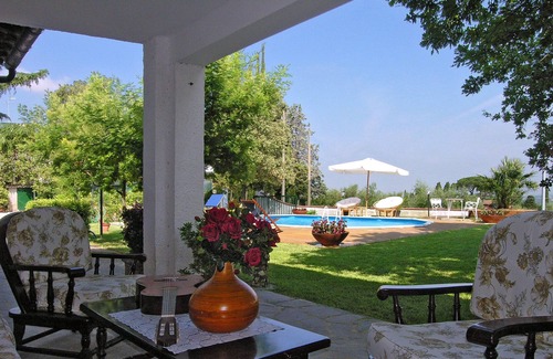 Villa Geranio is a delightful detached villa situated in the hills near Casciana Terme with beautiful views of rolling Tuscan hills for miles around. It has a large garden with lawns, fenced all round, a lovely private swimming pool for relaxing and admiring the breathtaking panorama and pergola patio and a veranda for sitting and dining al fresco. The villa is furnished in a homely country Tuscan style, and fitted with all modern comforts.