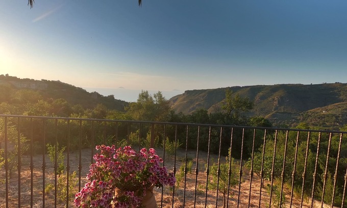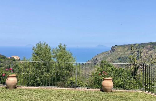 Villa Gisella is a house accessed through a private house, has a large garden with lawn, the pool is for the exclusive use of the villa, has a panoramic view of the Aeolian Islands and San Marco d'Alunzio, an authentic Sicilian village of pre -greche, on one side you see the village and on the other the pristine hill. It is beautiful to have dinner in the garden and enjoy the sunset, while the lights of the village light up. There is an outdoor kitchen in red marble of San Marco (local stone), with barbecue and wood-burning, while the internal kitchen has all the appliances. There is a large living room with windows overlooking the garden and a fireplace. Four bedrooms and two bathrooms.