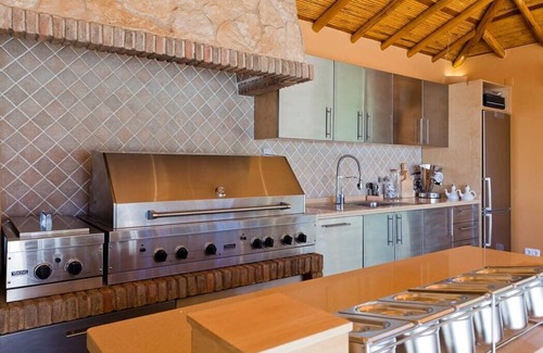 In order to take advantage of the fantastic Algarve climate, great care has be taken to ensure that guests can really enjoy all the benefits of outdoor living. with that in mind, there are three separate sofa and armchair areas, and premium quality sun-loungers, both round the pool area and on the private terraces on the first floor. Hammocks, and bean bags are also provided. To offer different external dining solutions, there is a table off the dining room and kitchen, under the covered terrace, or alternatively, there is a fully equipped outdoor kitchen and barbecue, containing and industrial Viking gas barbecue with rotisserie, twin high output gas burner (with wok ring), restaurant grade pizza oven, combination microwave and convection oven, dishwasher and combination fridge freezer, as well as air conditioning and a large flat screen television. This building has fully retractable double glazed doors that can be fully or partially opened according to requirements.