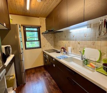 Food & DrinkTea/Coffee makerBathroomBathtub or shower, Body soap, Towels, Shampoo, Slippers, Hairdryer, Guest bathroom, Private bathroom, Toilet, Conditioner, Free toiletries, Bidet, Toilet paper, Shower, BathtubGeneralAir conditioning, Smoke Alarm, Heating, Fan, Carpeted, Key access, Fire extinguisher, Trash cansOutdoorsBalconyKitchenOven, Kitchen, Toaster, Wine glasses, Electric kettle, Microwave, Kitchenware, Dining table, RefrigeratorMedia & TechnologyFlat-screen TVLiving AreaSofaBedroomLinens, Wardrobe or closetViewGarden viewRoom AmenitiesNon-feather pillow, Tatami (traditional Japanese flooring), Socket near the bed, Clothes rackPhysical distancingSingle-room AC for guest accommodation |