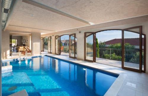 Villa Gradina offers accommodations in Budva, 1.8 miles from Jaz Beach and 8.1 miles from Sveti Stefan. This property offers a private pool, free Wifi, and free private parking. The accommodation offers a shuttle service, while a car rental service is also available. With direct access to a balcony with garden views, the spacious air-conditioned villa consists of 4 bedrooms. Offering a terrace with mountain views, this villa also features a flat-screen TV, a well-equipped kitchen with a dishwasher, an oven, and a microwave, as well as 5 bathrooms with a walk-in shower and bathrobes. The accommodation is allergy-free. There is an on-site bar. Guests can enjoy the indoor pool and garden at the villa. Kotor Clock Tower is 12 miles from Villa Gradina, while Sea Gate – Main Entrance is 12 miles from the property. Tivat Airport is 8.7 miles away.