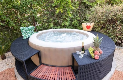 Relax in the hot tub (enjoy the outdoor furniture!) or sip a drink in the garden of this apartment. As for the great indoors, you can come inside and enjoy the free WiFi and TV.