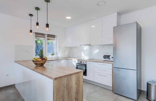 Villa Great Escapeis designed to maximize its picturesque surroundings. Floor-to-ceiling windows invite natural light into every corner of the home, while the use of natural materials and pastel colours inside pay tribute to its beautiful setting. From the sun-drenched terrace, you can retreat to a cosy sofa area, perfect for reading your favourite book or enjoying an afternoon nap. It's easy to feel like you'll never want to leave thishaven. The inviting waters of the private pool enhance the serene atmosphere, with plush sun loungers providing the perfect spot to bask in the Croatian sunshine. For evening relaxation, there's an alfresco dining area and a brick-built barbecue where you can enjoy dinner while watching the sunset and listening to the local fauna settle down for the night.