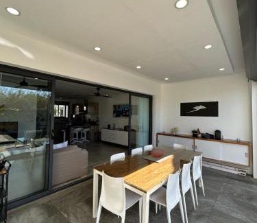 Food & DrinkTea/Coffee makerBathroomPrivate bathroom, Bathtub or shower, Shower, Shared toilet, Guest bathroom, Towels, HairdryerGeneralTile/Marble floor, Fire extinguisher, Iron, Ironing facilities, Fan, Key access, Safe, Private entrance, Air conditioning, Trash cans, Smoke AlarmMedia & TechnologyStreaming service (like Netflix), Cable channels, Flat-screen TV, TV, Satellite channelsOutdoorsBalcony, Barbecue, Outdoor furniture, Private pool, Outdoor dining area, TerraceKitchenWashing machine, Cleaning products, Dining table, Toaster, Oven, Wine glasses, Electric kettle, Kitchen, Microwave, Stovetop, Coffee machine, Kitchenware, Dishwasher, RefrigeratorLiving AreaSitting area, Dining area, SofaBedroomLinens, Wardrobe or closetViewPool view, Garden viewBuilding CharacteristicsDetachedRoom AmenitiesNon-feather pillow, Adapter, Drying rack for clothing, Socket near the bedEntertainment & Family ServicesBoard games/puzzlesPool and SpaSaltwater pool, Pool towelsPhysical distancingSingle-room AC for guest accommodation |
