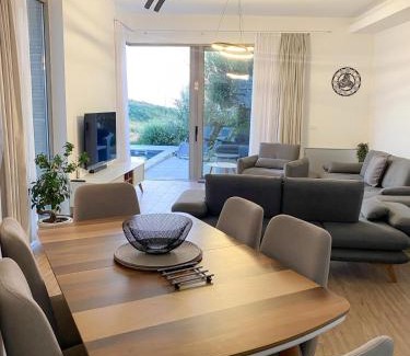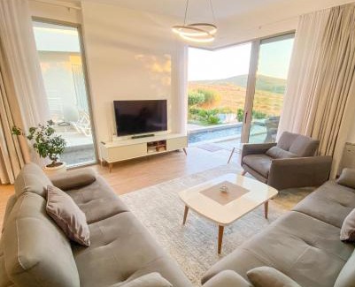 Villa Hana With Pool offers accommodations in Shetaj, 1.2 miles from Rodoni Beach and 31 miles from Durres Amphiteatre. This property offers access to a terrace, free private parking, and free Wifi. The villa offers a pool with mountain views, open-air bath, and private check-in and check-out. The air-conditioned villa consists of 2 bedrooms, a living room, a fully equipped kitchen with a dishwasher and a coffee machine, and 2 bathrooms with a walk-in shower and slippers. Guests can enjoy a meal on an outdoor dining area while overlooking the sea views. For added privacy, the accommodation features a private entrance. Tirana International Mother Teresa Airport is 22 miles from the property.