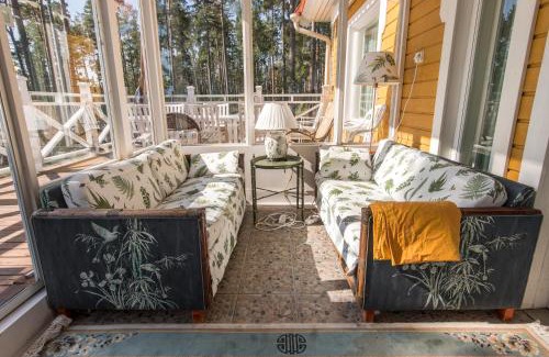 Offering a garden, Villa Harald - Beachfront provides accommodations in Hitis. This beachfront property offers access to a patio, a pool table, free private parking, and free Wifi. Guests also enjoy access to the sauna and hot tub, as well as the spa facilities and indoor pool. Providing a balcony with sea views, this villa also provides guests with a flat-screen TV, a well-equipped kitchen with a dishwasher, an oven, and a microwave, as well as 2 bathrooms with a bath and a hair dryer. For added privacy, the accommodation features a private entrance. Guests can make the most of the warm weather with the property's barbecue facilities. You can play tennis at the villa. Cycling and hiking can be enjoyed nearby, while a bicycle rental service and a private beach area are also available on-site. Turku Airport is 70 miles away, and the property offers a paid airport shuttle service.