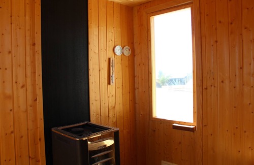 Villa Sin Pena 'pure wellness'. The property is located in the immediate vicinity of the golf course in Puerto del Carmen on Lanzarote. Stylish domicile with 3 bedrooms, one with bathroom 'en suite', one with separate bathroom, fully equipped kitchen, living room, satellite TV and music system, free WiFi, dining area, hallway and as a highlight a wellness area for single use with jacuzzi and sauna, terrace with BBQ and sitting area as well as sun beds. The very large pool of the finca on a park-like property is also exclusively available to guests (for bookings received from 1.18.18!). All guests are received and checked in at the property. There is a 'Wellcome Package' with wine, beer, champagne, soft drinks, fruit basket and snacks. Bathrobes, towels and bed linen are included in the price! The golf course, the beaches of Puerto del Carmen, the marina Puerto Calero, restaurants and shops as well as a private clinic are in sight
