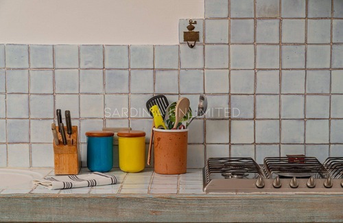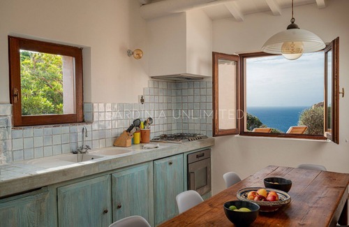 This fantastic villa in Sardinia is made up of two distinct buildings around the exclusive swimming pool: the main house is made up of an elegant living room and a large fully equipped eat-in kitchen, two bedrooms and two bathrooms with tub and shower.