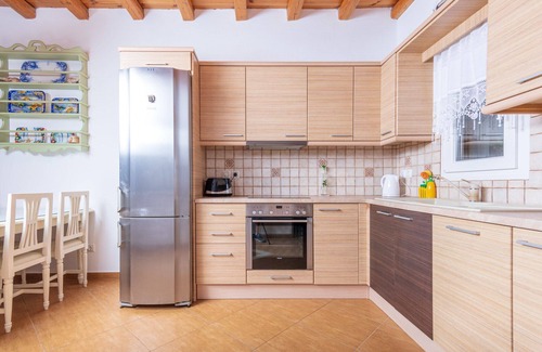 The big kitchen with all useful things (refrigerator,oven) helps you with the self-catering.