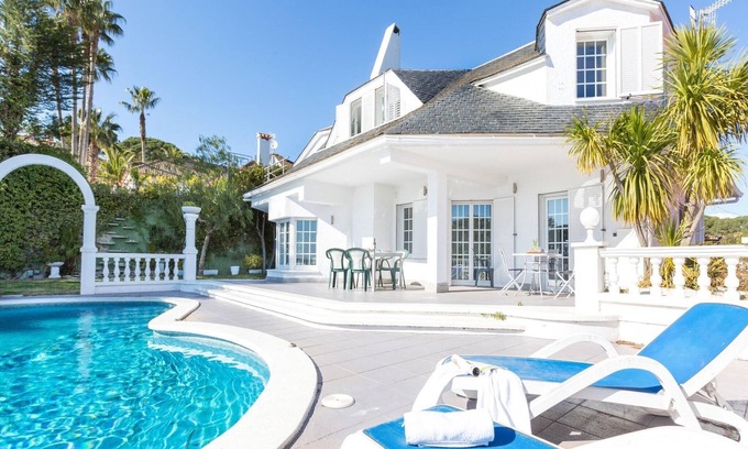 This charming 5-bedroom villa is located in a tranquil residential area just 3 km from Blanes, one of the most beautiful towns on the Costa Brava. Perfect for family vacations, it accommodates up to 9 guests and offers a peaceful environment, surrounded by stunning beaches with crystal-clear waters. The property features a spacious 800m² outdoor area with a large private garden, a 12x4m swimming pool, and beautiful sea views. You can enjoy breakfast or meals beside the pool, making it the ideal place for relaxation and outdoor enjoyment. The villa also includes a garage with space for 2 cars. Inside, the villa offers 400m² of comfortable living space, including a large dining room with a fireplace and TV, which opens directly to the pool area. The fully equipped kitchen is perfect for preparing family meals, with all the essential appliances including a fridge, microwave, oven, dishwasher, and washing machine. The villa features two double bedrooms, a bedroom with a bunk bed, a bedroom with a trundle bed, and a single bedroom, along with three bathrooms to accommodate all guests comfortably. The villa is equipped with modern amenities like free Wi-Fi and heating for added comfort. Pets are not allowed, and the property is exclusively rented to families, with reservations for groups of young people under 35 not accepted. With its spacious design, private garden, and convenient location close to the beach and Blanes city center, this villa is the perfect spot for a family getaway on the Costa Brava.