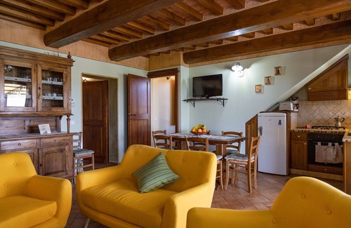 Through an internal staircase you climb up the double bedroom with panoramic balcony overlooking the valley from which you can enjoy beautiful Tuscan sunsets. A/C, SAT TV and private bathroom with shower.