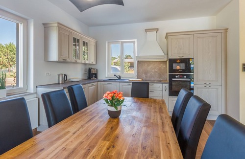 Enjoy the sunshine and rejuvenate yourself in the private courtyard or terrace. On the first floor, there is balcony with furniture and beautiful view into the landscape and sea. Air conditioning as well heating is available to keep you comfortable in warm as well as cool weather. Cook delicious meals in the open kitchen and barbecue or just enjoy watching TV in the living room with your loved ones. Parking is on-site. Cot is available on request.