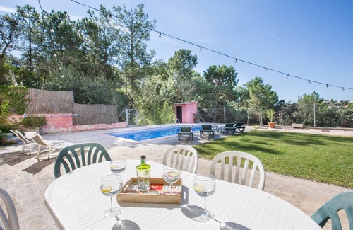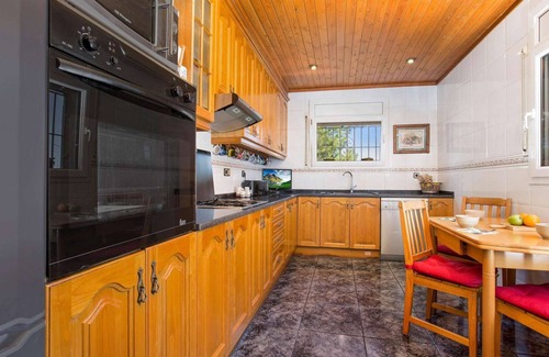 This charming 4-bedroom villa accommodates up to 8 guests and is the perfect getaway for families seeking relaxation and privacy. The spacious living room includes a cozy fireplace, TV, and access to a small balcony with scenic mountain views. The kitchen is fully equipped with a fridge, freezer, microwave, dishwasher, and washing machine, offering all the essentials for a comfortable stay. The villa features 3 double bedrooms with comfortable beds and 2 bathrooms, one with a bath and the other with a shower. Pets are not allowed, and the property is exclusively available for family rentals, with a restriction on bookings from young people under 35. Located just 8 km from the vibrant center of Lloret de Mar, this villa is perfectly situated to enjoy the best of the Costa Brava. The stunning beaches of Lloret de Mar are within easy reach, offering sun, sand, and sea for relaxation or water sports. Nearby, you’ll find local shops, markets, and a variety of dining options, from casual eateries to upscale restaurants. The peaceful and quiet neighborhood provides a serene retreat after a day of exploration or beach activities. The villa features a lovely outdoor area with a private swimming pool (8x4m), a spacious garden, and a shaded terrace perfect for outdoor dining. The built-in barbecue area comes with a fridge and microwave, creating an ideal setting for family meals by the pool. The villa also offers parking for one car, and optional air conditioning is available for added comfort.