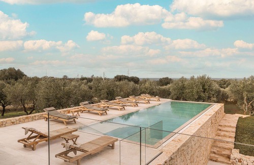 Welcome to Villa Valeria, presented by Epoca Collection, nestled in the lush countryside of Ostuni. This modern sanctuary combines the serenity of its natural surroundings with the elegance of contemporary design, creating an exclusive retreat for those seeking both privacy and pampering.