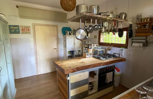 The villa is composed as follows: large living room, veranda dining room, peninsula kitchen, No. 4 bedrooms plus a study room with a sofa bed for a total of 12 beds, 3 bathrooms including one "for guests" in the entrance. It is surrounded by zoned garden (large rectangular table for lunch/breakfast, outdoor kitchen with stove and two tables, sofa area, hammocks). The wildlife is varied, there are numerous species of birds, from herons to jays and hoopoes that feed directly on the lawn in the garden.