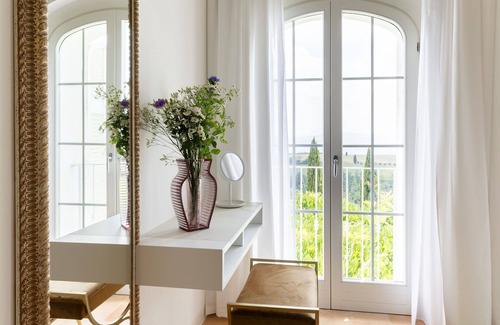 All 6 suites/rooms are designed differently but have a memorable style and classic Italian flair. Furnished with a king-size bed and comfortable sofa, each room has its own bathroom with bath and shower. Stylish decoration with warm colours gives you an immediate feeling of well-being. Villa delle Vigne and its spacious rooms are the perfect host for luxury Italian holidays, from reunion gatherings to weddings.