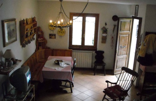 Double bed (two adults) and 1 sofa bed for 1.5 people (for 2 children up to 12 years old) + laundry room + play area and fitness. Fruit trees, sunbath, two outdoor tables with chairs and deck chairs, hammock, barbecue. The access goes directly from the main road (asphalted, length 5 m). In winter there are snow chains recommended. Parking lot on the property and the street in front of the house. Specialcentral heating (oil). Open from mid-October to late March Facilities: Playstation, iron, washing machine and dryer. TV reception takes place via antenna, electric wire. TV channels only in local language. WellnessIn the complex: solarium. LeisureHercules multifunctional device for trained muscles, 1 barbell with weights Dogsnot allowed. DistancesShopping opportunity 200 m, restaurant 200 m, town center 200 m. thermal bath in Bagni di Lucca 30 km. indoor swimming pool in Cutigliano 5 km. Lucca 50 km