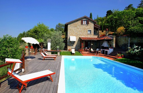 Located near Castiglion Fiorentino, this villa has 4 bedrooms and accommodates 8 people. This luxurious villa has a swimming pool and offers stunning views of the valley. It also features a wood oven where you can make your own pizzas, making this the perfect holiday home for a family vacation.