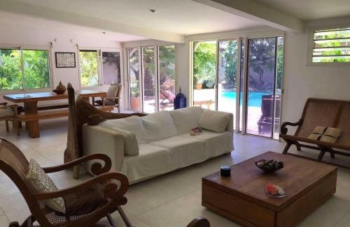 Providing a garden, Villa Jasmin avec piscine chauffée à 50m plage et lagon offers accommodations in Saint-Gilles-les-Bains. This property offers a private pool, free Wifi, and free private parking. Grand Fond Beach is a few steps away and The House of Coco is 11 miles from the villa. Offering a terrace and pool views, the spacious villa includes 5 bedrooms, 2 living rooms, satellite flat-screen TV, an equipped kitchen, and 4 bathrooms with a walk-in shower. Towels and bed linen are featured in the villa. The property has an outdoor dining area. Guests can make the most of the warm weather with the property's barbecue facilities. Botanical Gardens Mascarin is 13 miles from the villa, while Stella Matutina Museum is 18 miles away. Roland Garros Airport is 27 miles from the property.