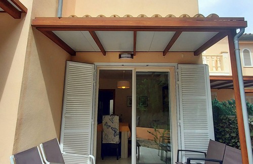 Beautiful semi-detached house of 160m2 of Mediterranean style with 3 bedrooms plus superior studio in the urbanization "Son Floriana" Cala Bona next to Cala Millor. Is 800 m (10 minute walk) from the seafront and beach. private garden of 60m2 with charcoal barbecue. Internet wifi, two satellite TV and air conditioning in master bedroom and living room. Garden with 4 sun beds, umbrella and solar shower. Dining terrace for 6 people. From the upper terrace there are views over the bay of Costa de los Pinos and the "Puig de sa font" of son servera.