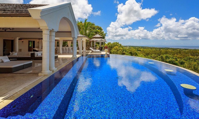 Kailani, a 5 bedroom luxury ridge-front property on the West Coast of Barbados. With breathtaking panoramic sea views, the property exudes Caribbean luxury and elegance. Encapsulating indoor-outdoor living at its finest there are open plan living spaces, a vast covered terrace, glass doors and neutral high-quality finishes. The private villa includes a large infinity-edge pool, alfresco dining and bar, hot tub gazebo, BBQ grill with informal dining, modern kitchen, TV room, office, games room and gym.