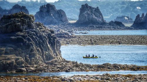 This beachfront property offers access to free Wifi and free private parking. The vacation home also offers facilities for disabled guests. Providing a terrace with sea views, this vacation home also offers a cable TV, a well-equipped kitchen with a dishwasher, an oven, and a microwave, as well as 3 bathrooms with a bath and a hair dryer. The accommodation has a fireplace. For guests with children, Villa Kermohic - en front de mer provides a children's playground. There is a garden with a barbecue at this property, and guests can go cycling and hiking nearby. Brest Bretagne Airport is 80 miles away.