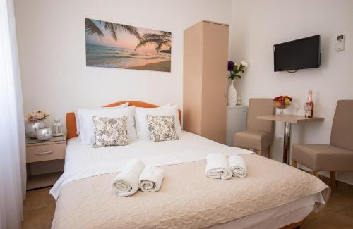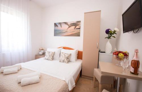 Villa Kovacevic offers accommodations in Bar, 14 miles from Lake Skadar and 19 miles from Sveti Stefan. A 9-minute walk from Susanjska Beach and 2.3 miles from Port of Bar, the property provides a garden and barbecue facilities. Private parking can be arranged at an extra charge. All units feature air conditioning and a flat-screen TV. Rooms include a kettle, a private bathroom, and free Wifi, while selected rooms also boast a terrace and some have sea views. At the apartment complex, units include bed linen and towels. Buffet and Italian breakfast options with warm dishes, fresh pastries, and fruit are available. For visitors looking to embark on day trips to nearby landmarks, the apartment features a selection of packed lunches. Both a bicycle rental service and a car rental service are available at Villa Kovacevic. Aqua Park Budva is 24 miles from the accommodation. Podgorica Airport is 26 miles from the property, and the property offers a paid airport shuttle service.