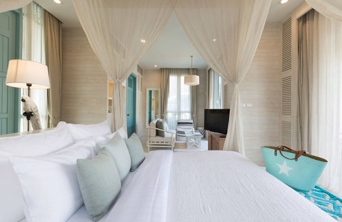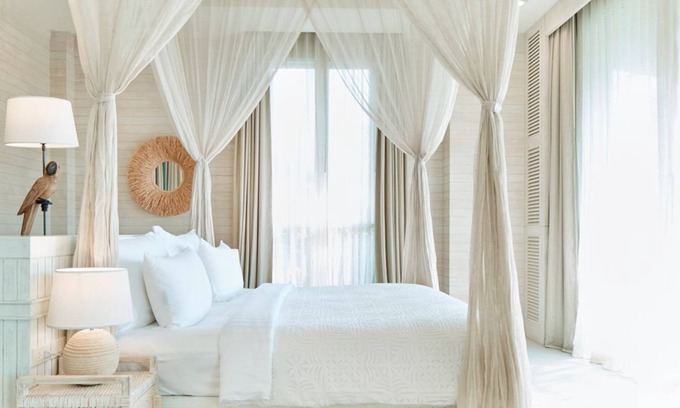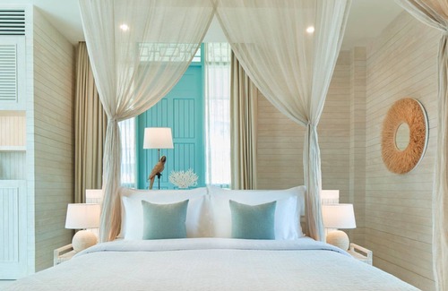 Discover the epitome of island relaxation at Villa Kudu on Koh Yao Noi. This 62-square-metre haven offers a spacious bedroom, an inviting living area, and a private plunge pool. Step out onto your wide balcony to soak up the serene ambience, complete with comfortable sun loungers and vibrant, Mediterranean-inspired décor. Indulge in the ensuite bath featuring a rain shower and tub, and unwind in a space that perfectly blends comfort with a tropical island vibe.