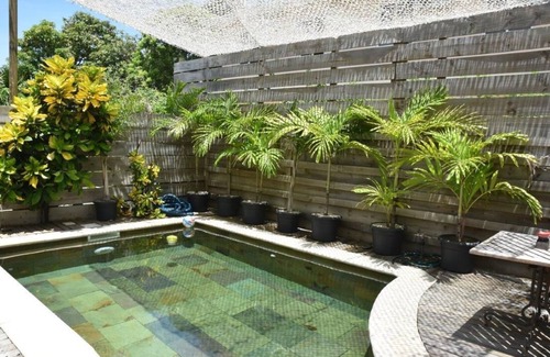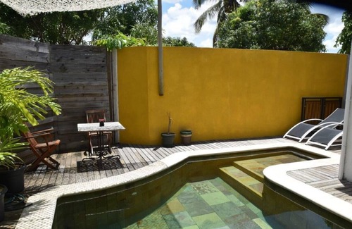 Beautiful house in secure area of Rivière Noire on the west coast of Mauritius with an area of 180 m2 in a small shaded courtyard with a slate-covered swimming pool. The house is supplied with the following equipment: