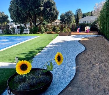 Offering a garden, Villa La Roca con casita independiente features accommodations in Guadarrama. This property offers a private pool and free private parking. Outdoor seating is also available at the villa. Providing access to a balcony with pool views, the air-conditioned villa consists of 6 bedrooms. Featuring a terrace with mountain views, this villa also comes with a satellite flat-screen TV, a well-equipped kitchen with a dishwasher, an oven, and a microwave, as well as 5 bathrooms with a walk-in shower and a hair dryer. There's also a seating area and a fireplace. Plaza de España Metro Station is 27 miles from Villa La Roca con casita independiente, while Temple of Debod is 27 miles from the property. Adolfo Suarez Madrid-Barajas Airport is 37 miles away.