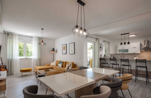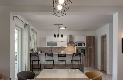 With a magical backdrop of the Croatian mountains, only two-minute walk to the lake and 15 minutes-drive from the magnificent clear blue waters of Adriatic Sea, holiday home Lake and Sea offers the best of Croatian landscape and is the ideal base for exploring the natural beauty of the area. The bright and spacious home yields stunning views of the lake from its two balconies and comes equipped with a 32 m² indoor pool, a sauna room, an outdoor barbecue area perfect for lovely evenings spent with family and friends, covered outdoor dining area, also a pool table, table football and exercise equipment. In addition, at your disposal is a large living room with sofas and TV, a fully equipped kitchen and a dining table fit for eight.