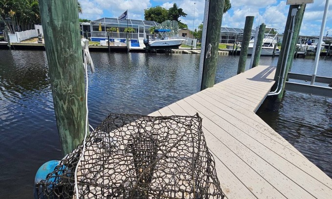 Huge Dock: 2 boat lifts, crab trap, snook light, fishing gear, filet table, kayaks, chairs and table